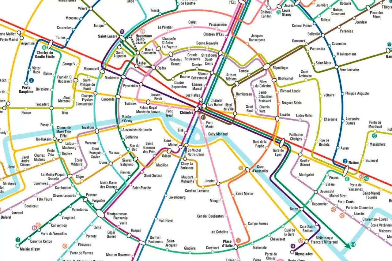 巴黎地铁图是一个庞大的城市交通网,也是一个巨大的制图挑战。首先,马克斯·罗伯茨通过研究RATP的档案和过去的地图来获得灵感,其中包括了30-50年代的“Lagoutte”。