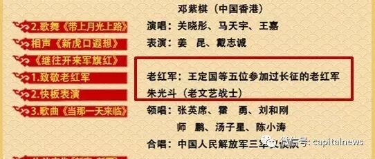红军长征胜利80周年刚刚过去。今年春晚也融入了这一元素,编排了致敬老红军的节目。在节目单上,长安街知事APP注意到了一个传奇的名字:王定国。可以说,1933年入党的她一定是春晚现场资格最老的共产党员。