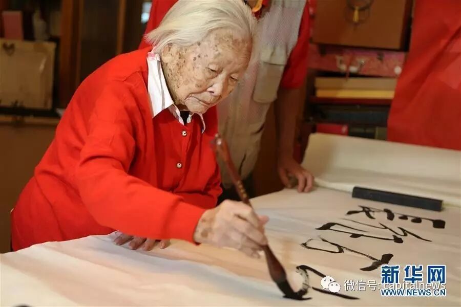 去年,新华社记者曾采访王定国。她提笔,蘸墨,俯身,深吸一口气,挥动手臂一气呵成,四个大字跃然纸上——“长征万岁”。