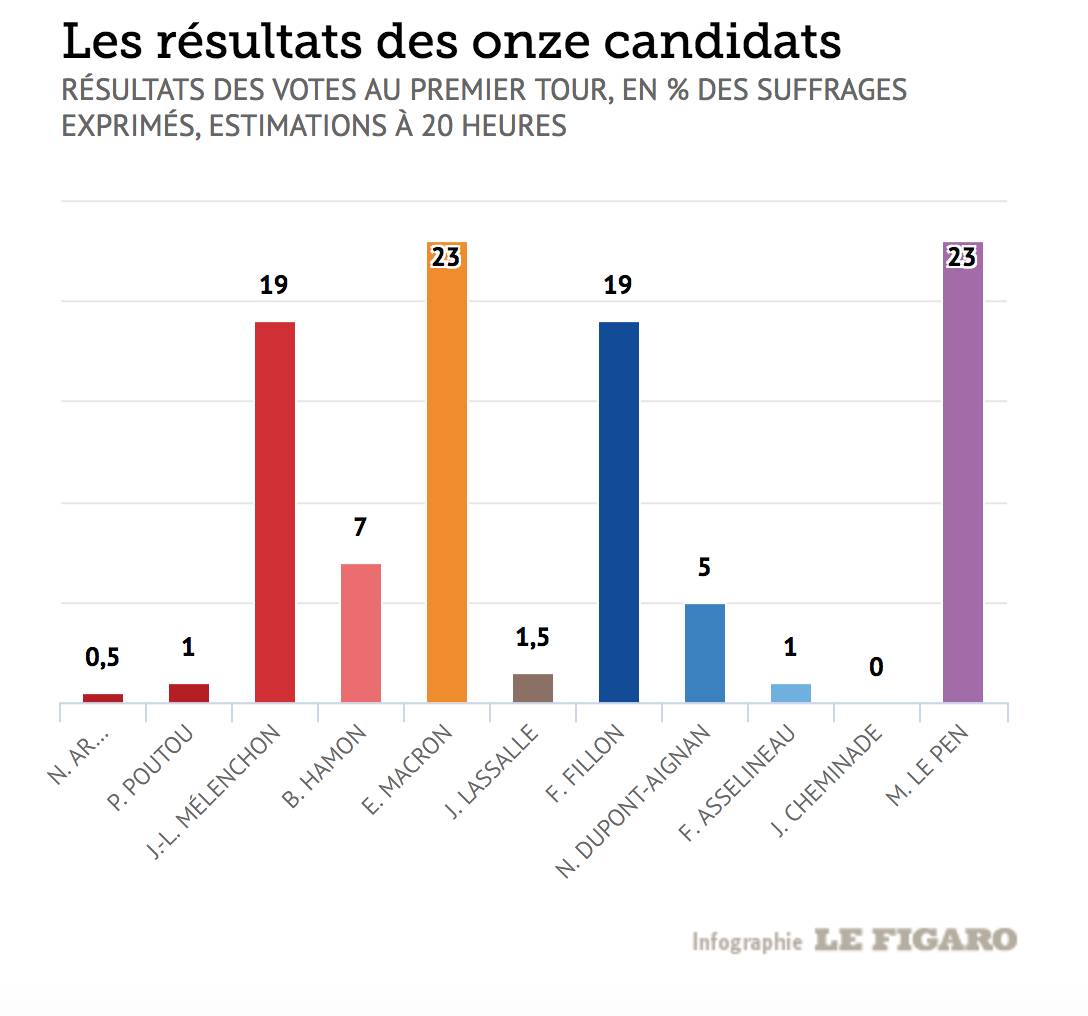 法国总统大选连续 | 巴黎香街恐袭案前最新民调: 马克龙第一胜选挺进第二轮