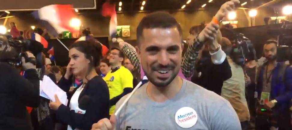 在马克龙的选举总部,许多支持者身戴“马克龙总统”的标示,已经开始挥舞法国国旗。多名政治人物如拉法兰(Raffarin)、贝鲁(Bayrou)、本次社会党候选人阿蒙(Hamon)都呼吁投票给马克龙。