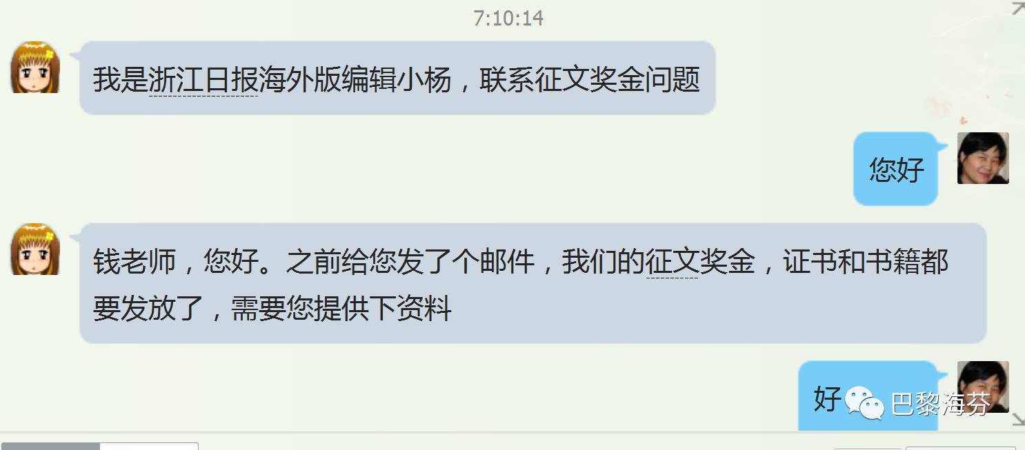 编者按:2017年5月27日,一早醒来,突然看到qq里有几个要求加朋友的。其中一位是浙江日报海外版编辑部的小杨。