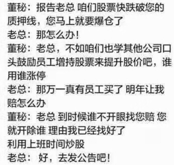 有人觉得既然大股东有保底的承诺,员工就不用担心亏损,还可以继续增持。这种想法颇有些一厢情愿。
