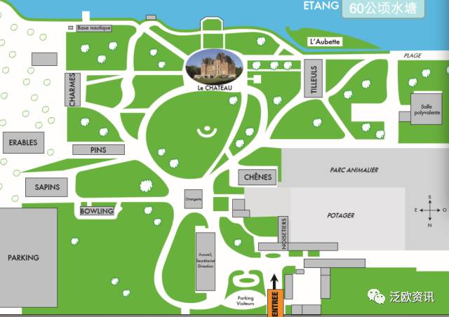 位于法国中部大区SOLOGNE 地区; 处于大负氧离子极高的无工业污 染的森林中; 面向900亩水面的大水塘;