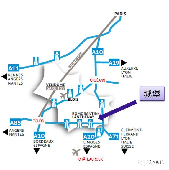 距离巴黎165公里,不到两小时 车程; 距离A71号高速公路8公里; 距离巴黎AUSTERLITZ火车站1 小时45分. 和法国 CAC40 的精英做邻居! 路易威登,布依格等……