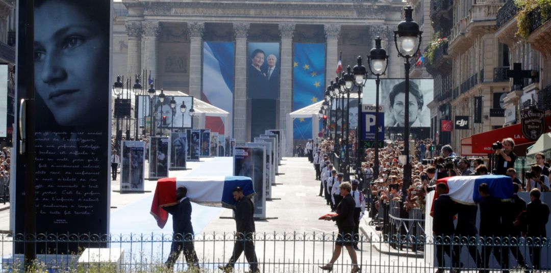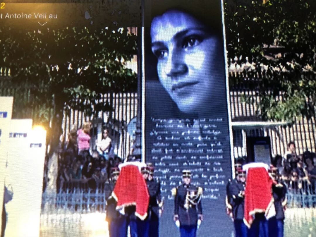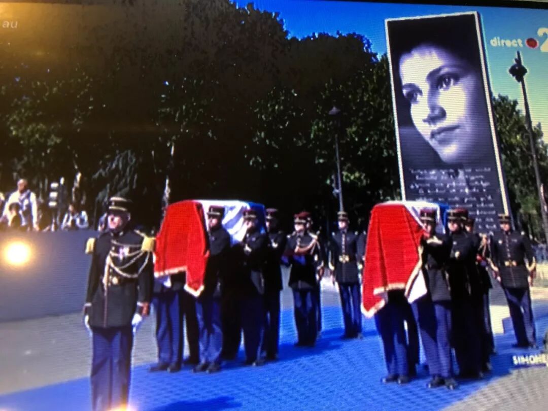 西蒙娜-韦依夫人和丈夫安东尼-韦依的灵柩今天上午在他们的家人和法国总统马克龙的陪护下从犹太人遭大屠杀纪念馆移到法国新古典主义建筑先贤祠的广场上。入祠仪式由法国总统马克龙主持,上千人受邀出席,包括两位法国前总统萨科齐和奥朗德。