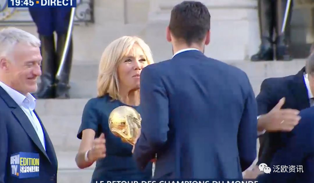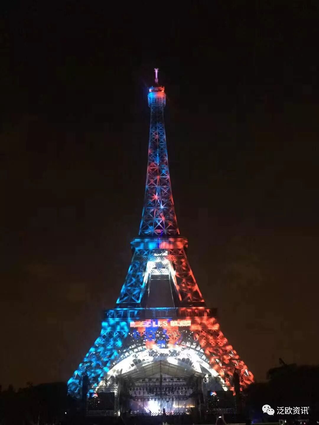 报道还称,为庆祝法国队夺冠,凯旋门正在循环播放国家队队员的照片,埃菲尔铁塔也亮起了法国国旗色的灯光。