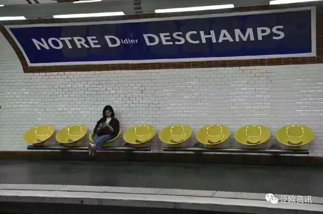 为了庆祝俄罗斯世界杯上法国时隔20年再捧杯,“法兰西岛大区和巴黎铁路公司”(RATP)今天把一些地铁站的名字改成了世界杯主题,把主教练和守门员的名字,以及“蓝队”等字眼镶嵌进了巴黎人熟悉的地铁站牌。