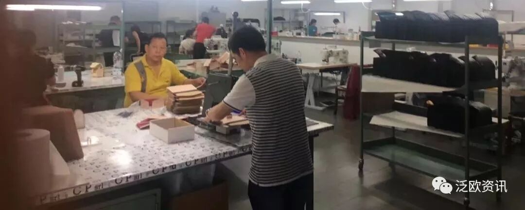 这家厂主管叫黄岩钏,是瑞安桂峰人,他介绍,这家工厂有2万多平方米面积,主要是受品牌商委托接单,加工顶级品牌皮具,运往世界各大城市商场,产品销量供不用求。整个加工流程工序非常谨密,来不得半点疏漏。他说着带我们参观成品车间,让大家觉得它的规模之大和档次之高,令人惊叹不已。