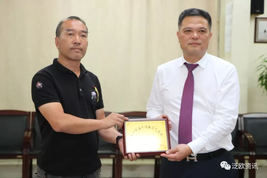 当温州海外传播示范基地主任许鹏怀把铜牌交给任俐敏主席时,记者注意到:这是001号!001号!