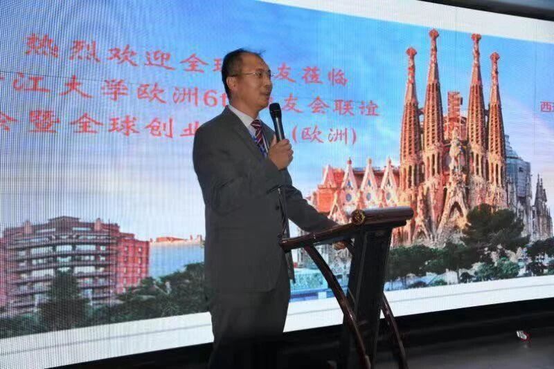 朱健参赞致辞,对浙江大学第六届欧洲校友会联谊会暨第五届浙江大学全球创业大赛(欧洲区)西班牙举办表示热烈欢迎!他强烈感受到了现场学子们对母校的感情,也联想到自己对母校的一草一木的思念。他说:校友创业大赛是校友能量传承的重要平台。母校是校友最强大的依靠、最温暖的家园,而校友则是母校最宝贵的财富、最坚定的力量。他祝福浙江大学第六届欧洲校友会联谊会暨第五届浙江大学全球创业大赛(欧洲区)西班牙成功举办!