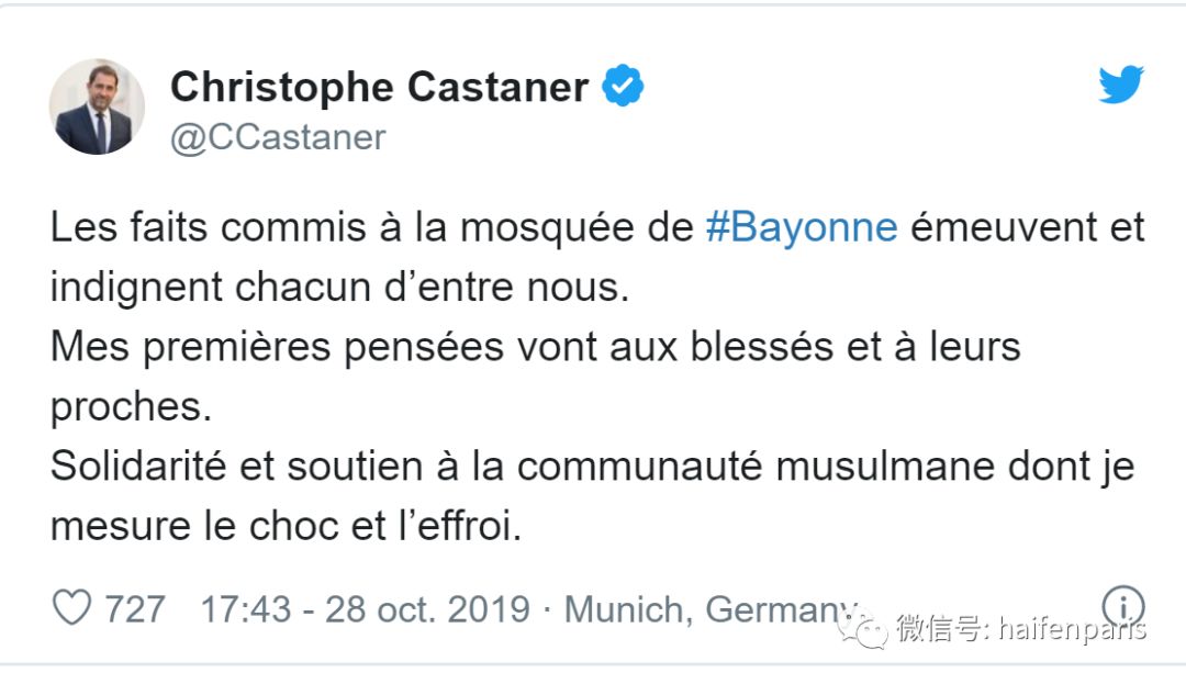 从法国内政部长克里斯托夫·卡斯塔纳(Christophe Castaner)到 许多议员,大家都对此非常关注和重视。整个法国社会都谴责了这一行为。